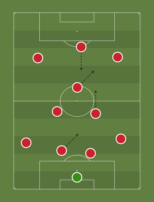 Ogge slår en inspark upp mot mittback eller helst direkt till innermittfältare. Kan mittfältare vända då han är själv så gör han det och passar upp mot Joel. Om mittfältaren ej kan vända slår han tillbaka bollen till mittback som försöker hitta en långboll till Joel. Joel tar emot bollen och slår tillbaka på Olle som helst på en touch slår en crossboll till en av våra Wingers. August eller Ludwig sticker ner mot hörnflaggan och slår ett inlägg till Joel samt wingern som ej slår inlägg. Den offensiva mittfältaren (Olle) befinner sig utanför straffområdet och är redo att stoppa kontring eller själv ta avslut. Max en CDM kan följa med upp samt i vissa fall en ytterback om läge finns.