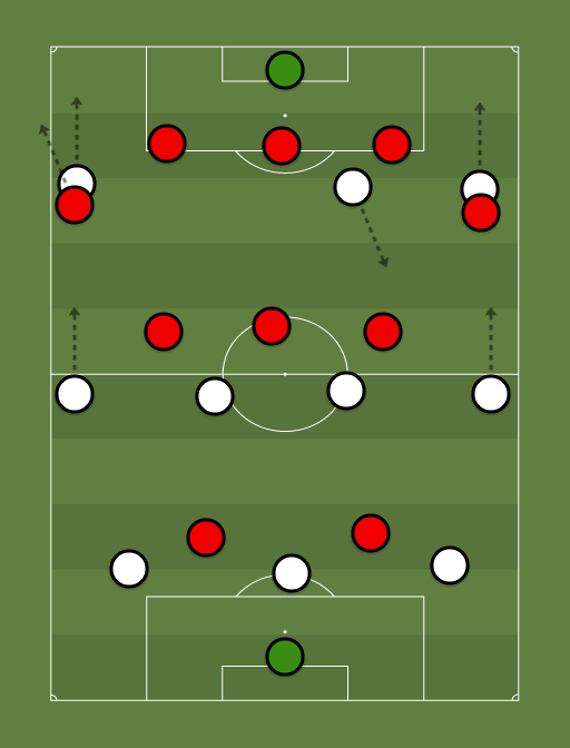 포워드가 내려가면서 넓게 벌려진 사이드 윙백과 연계, 윙이 침투후 크로스 = 반대편이 먹기 센터백이 딸려나올까?