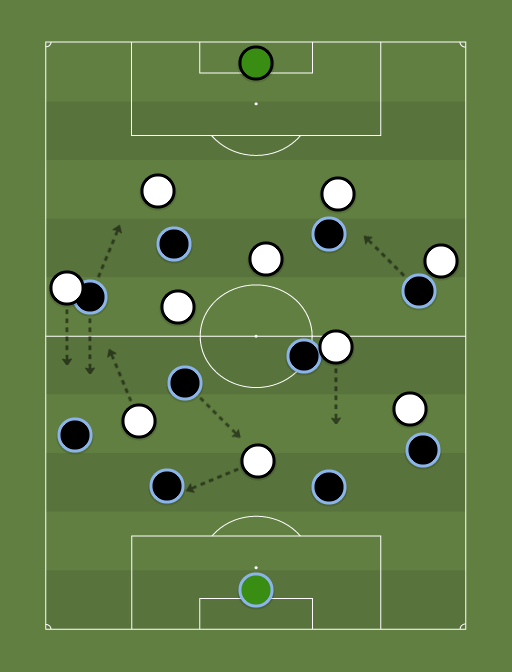 1st Half: City Mid Block 4-4-2 RM Assymetrical => 1st zone defence, 2nd zone (R to L) Isco - Modric - Casemiro - Vini, 3rd zone Benz - Fede (Fede comes deeper when the ball is in RM's defensive third SO 4-1 (Casemiro) -4-1 RM has most possesion but mostly in non dangerous positions. Greatest chances: City => Jesus - 6 yard box & Set Piece in extra time. RM=> Benzema header and afterwards Vini unsuccesful tap-in Dinho came in for Laporte in 33' (injury). xG (Infogol): 0.38 (RM) - 0.66 (City) with 3(1) - 4(2) Shots.