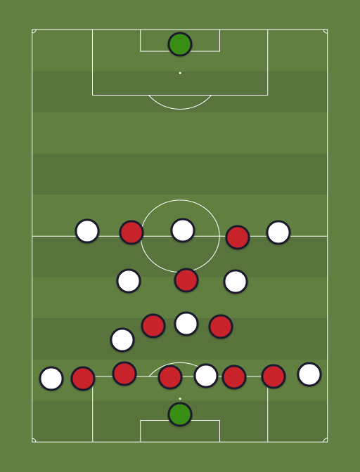 Structure défense susceptible à être employée dans le dernier tiers du match. Le changement d'Herrera par Sarabia permet d'annuler leurs pistons si l'on est en train d'avoir des problèmes avec leurs centres ainsi qu'assurer un meilleur marquage de Zapata et de Gómez. Neymar, étant donné qu'il sera fatigué, restera en haut avec leurs 2 millieux centraux.