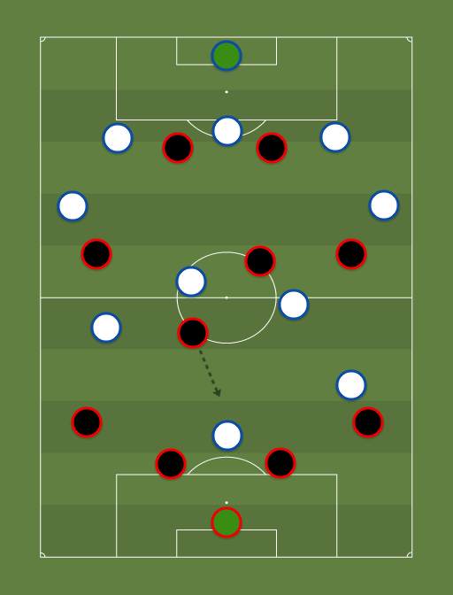 Saques rápidos de Moreira. Buen juego de Clunie, evitando la conexión Faerrón - Salva y presionando mucho. Azofeifa no ha sido tan efectivo. Juan Vicente trata de tapar la salida por el centro yendo sobre Alex. Expulsan a Camareno al 31: 5-3-1 Fernández-Fajardo-Núñez-Aguirre-Flores Azofeifa-Chévez-Clunie Juan Vicente Después del 0-1, Aguirre vuelve a subir y hacen 4-4-1