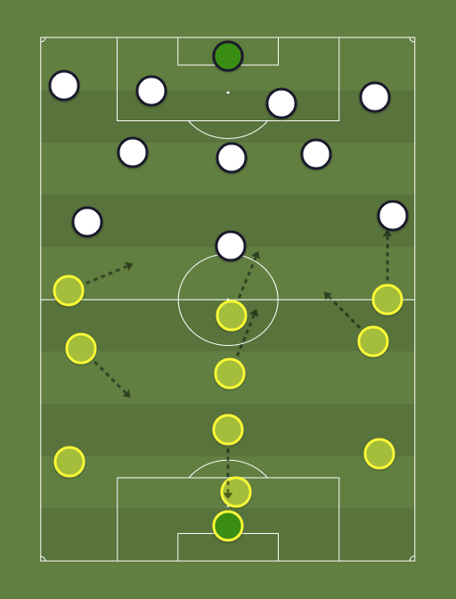 dm provides coverage for CB in central areas. sprays balls out to wingers or fullbacks. am keeps the game ticking. doesn't have to track back but should receive the ball deep. cms cover. st receives the ball outside the box for a shot or pass