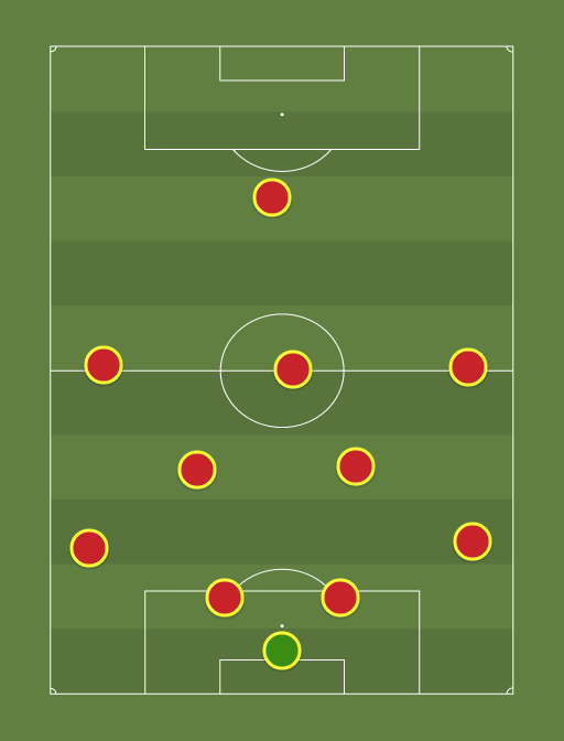 in attack both wingers tuck in for space in the wide areas for full backs to come and cross. meanwhile the amc and cm are on the edge of the box for shots and the other mid fielder tacks with the centre backs to create a wall against counter attacks