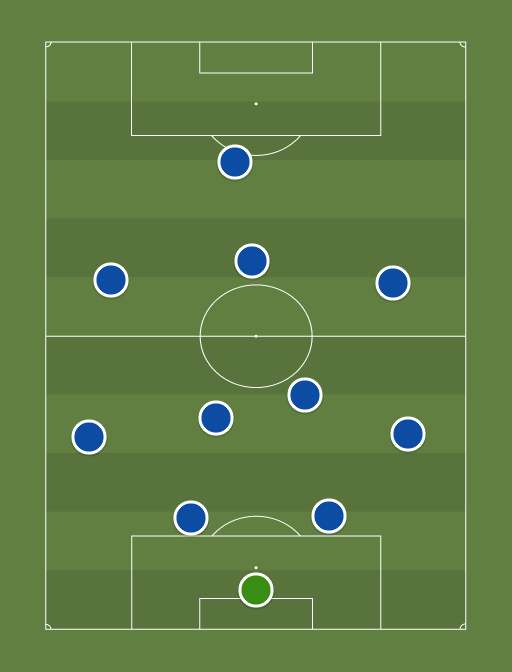 Sistema tático moderno, 4 defensores, 2 volantes, 3 meio campistas e 1 atacante.