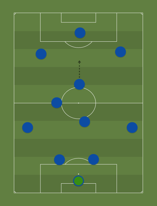 4 - 2 - 3 - 1 with high full backs and a pressing centre forward