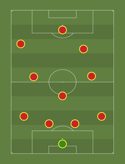 Wissels: Matthijs Kool Melvin Johan 4-3-3 Ik heb m even wat anders neergezet. Er is niks makkelijk voor de verdediger als ze een vaste man hebben. Dit maken we zelf verdedigend ook mee, omdat we het lastig vinden om zone te verdedigen en bij een opkomende man weten we niet hoe we door moeten schuiven. Dit moeten wij aanvallend ook veroorzaken bij onze tegenstanders! Aanvallend: Bij de opbouw moeten de backs hoger op gaan staan (middenlijn) op deze manier komt er ruimte voor de centrale verdedigers en Bernard. Hierdoor kun je makkelijker opbouwen ipv de lange bal spelen. Dave zal de meer verdedigende taak oppakken en Niels kan wel langs die lijn razen, want Remon speelt iets verkapt naar binnen. Waarom? Remon komt van buiten naar binnen om zo met z'n linker op het hok te poefen of de combinatie te zoeken met middenveld en zodoende een gat creeert waar Remco of Niels in kunnen duiken en de voorzet kunnen geven. Wesley staat in de punt, balvast zodat middenveld onder kan komen of de actie maken en afmaken! Cas houdt het veld breed, waardoor Putten moet gaan kiezen en er meer ruimte komt voor ons middenveld. Brent op links half, zodat hij met rechts lekker t balletje de hoek in kan geven waarop Casje voorgeeft, Wesley scoort en Putten weer kan aftrappen. Verdedigend Speelt Putten nu 4-3-3 dan is Matthijs de vrije man en geeft rugdekking aan de andere 3. Wesley blijft diep en Cas en Lucas zullen verdedigend hun werk moeten doen. Dit kan dmv van overnemen dat bijvoorbeeld een Brent de opkomende back van Cas op pakt en dat Cas de man van Brent overneemt. Optie 2 Cas gaat gewoon achter z'n back aan. Spelen ze nu 4-4-2, dan stel ik voor dat Niels en Dave op de spitsen gaan en Rik op de 10. Of het moet een fysiek sterke spits zijn dan Rik hierop zetten en Niels doorschuiven op de 10. Bernard, Brent en Remco pakken dan de zone of allen hun eigen man. Remon en Cas zullen de opkomende verdedigers moeten oppakken. Zorg dat je verdedigend klein staat, dus goed kantelen! Bij balbezit breed uit en niet statisch! Na 2 nipte verliespartijen wat niet had gehoeven gaan we nu die 3 punten pakken mannen! Succes!