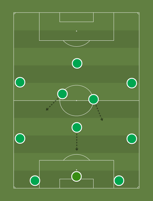 Posicionamento saque de puerta a favor. Intentamos salida en corto con centrales orientados siempre que el adversario nos deje. Si el rival presiona uno a uno nestros jugadores comenzaremos el plegamiento hacia zona central. En ese momento y bajo la orden de un aplauso del portero volveremos a explayarnos sobre el terreno de juego, intentando de nuevo la salida en corto.(La reacción tras aplauso debe de ser rápida y poco arriesgada en cuanto al pase se refiere)