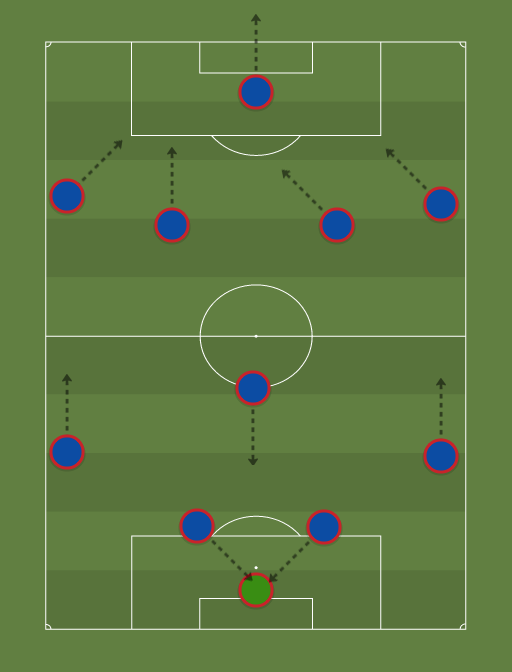 With this line-up I'd play try more tactics, for example long ball and counter attack. But I'd like players to play fast football, to make fast chances and on that way they can create more chances. There are very fast players in this team, that's the reason why I would force fast chances. From defensive tactics I'd like to use the high pressure. With that pressure every my player should keep certain player, let me explain: If the opponents play 4-4-2, then central backs should pay attention to the strikers, side backs should watch the wings, Modric and Di Maria should pay attention to the midfielders and the other attack should keep the defense.