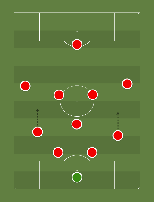 The strength of this side is the fact that everywhere you look there are possibilities for triangles. One of the problems that United have had recently is their inability to join up defence with midfield effectively to build an attack through possession football. If you look at this formation you can see that anywhere from defence there're easy triangles linking up with midfield. The midfield itself has got energetic creative players with pace on the left wing through DiMaria and invention on the right wing through Rooney, these players are able to interchange to cause problems tactically for opposition defences.