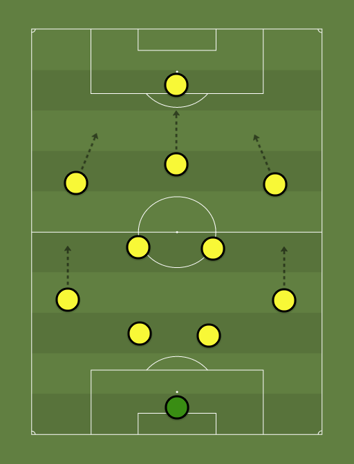 A solid defence and busy midfield will give many passing options in the middle of the pitch. Crosses, passes and long balls can be sent up field to Andrew H as the lone striker. Migoy and Derrick are free to run down the wings and shoot or pass to Andrew H in the box. Simon has the option to shoot or pass to Andrew H depending on the situation. Alex and Kevin can run up the wings and support Migoy and Derrick if needed. Alex and Kevin can also offer support with corners either defensively or offensively. Paul and Denis/Jonathan can play a defensive midfielder role and offer long balls and or short passes to Simon, Derrick or Migoy. Pearce and Andrew C can be a solid central defence by getting good tackles in with minimal running and then passing either up-field to Paul, Denis or Jonathan or over to the wings where Alex and Kevin will be. Majid is the best choice for our goalkeeper in the squad due to previous performances.