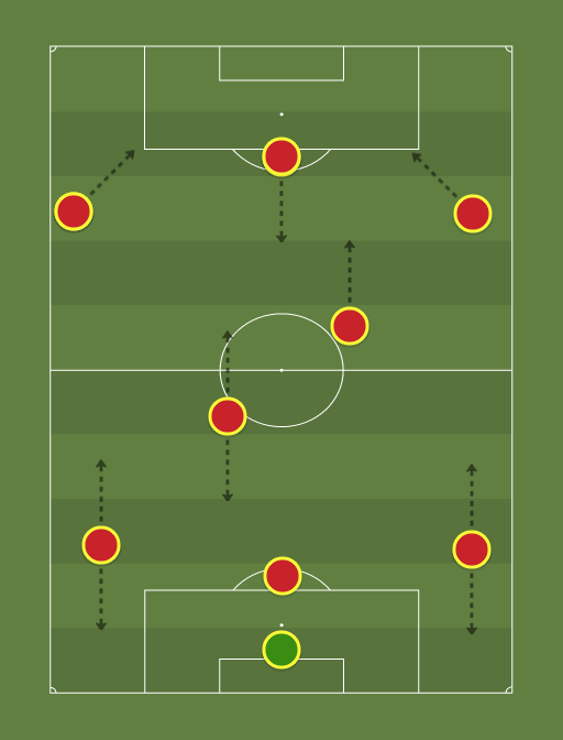 1. Nafees becomes the last man and does not venture forward at all, using his height and strength to bully opponents. 2. Moonis and the LB act as wingbacks, supporting both attack and defence. These positions needs a lot of stamina. 3. Ranjha plays in a box to box role, supporting both attack and defence. This position needs a lot of stamina. 4. Usama acts as an attacking midfielder, creating chances for the attackers. 5. Zain drops deep to receive passes and create space for Shah and Khawaja to run in and score.